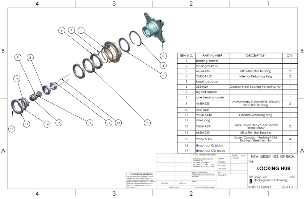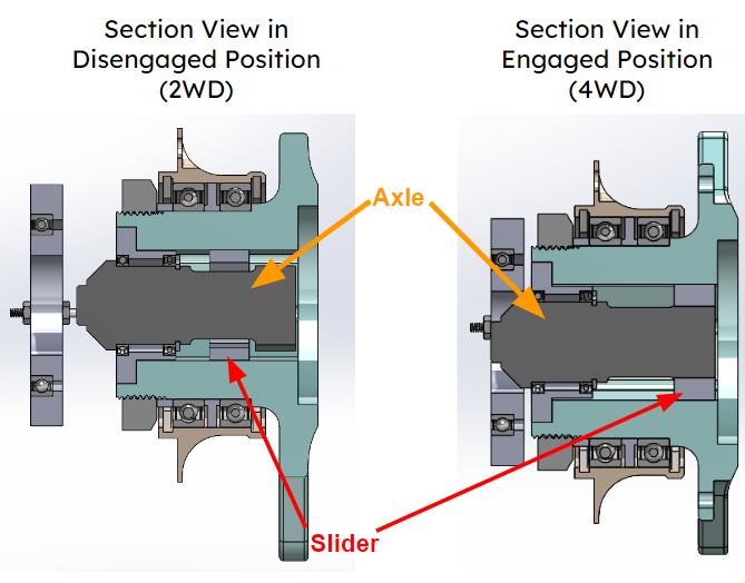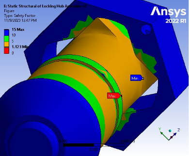 A manual-locking hub cap was designed for the SAE Baja car team to solve a recurring competition challenge. In order to determine the correct configurations and materials needed, FEA structural studies were conducted on ANSYS to learn the assembly’s behavior at worst-case loading.