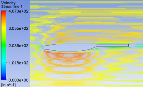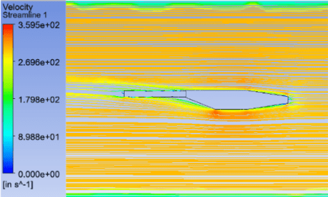 In selecting the fuselage shape, the aerodynamic and manufacturing characteristics were a priority. From the 3D CAD models on SolidWorks, I created a 2D plane of the fluid surface around the model. This 2D domain was then meshed on ANSYS, paying particular attention to the edges on the actual fuselage model and further refining the mesh by adding Sizings and Refinements. The plane was then analyzed in FLUENT, setting the air velocity (of flight) at 17 mph and using the k-Epsilon equations for solving. By running the analyses, the fuselage shape was improved, by rounding out the taper near the rear region, reducing the turbulence and improving the velocity distribution by approximately 12%.