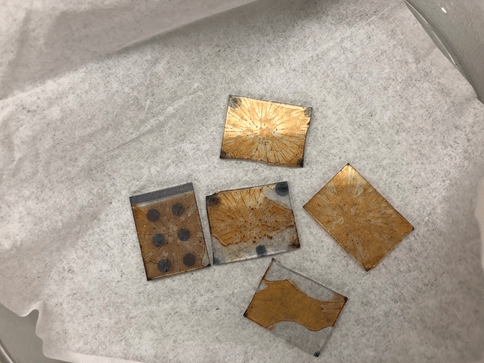 The polymer solution of poly(3,4 -ethylenedioxythiophene):poly(styrenesulfate) (PEDOT:PSS), which is mixed with dimethyl sulfoxide (DMSO) to create the polymer solution (PEDOT:PSS/DMSO), was shaken for a total of four hours; a sample of the solution was taken at one-hour intervals and spin-coated onto glass slides. Gold electrodes were deposited onto each slide—this was done in order to measure the resulting resistance and calculate the conductivity of each sample. The work function for each sample was calculated using the data from Kelvin Probe measurements. In a previous study done with CdTe (Cadmium telluride) solar cells [1], it was discovered that as the conductivity of the PEDOT solution increased, the more efficient the device became. In addition, the PEDOT:PSS/DMSO solution acts as an ohmic contact with the CdTe. CdTe has a high work function, meaning that if the ohmic contact does not have a compatible work function, a Schottky barrier is created. This barrier is responsible for the loss of electrons, lowering the efficiency of the solar cell by reducing its fill factor.
